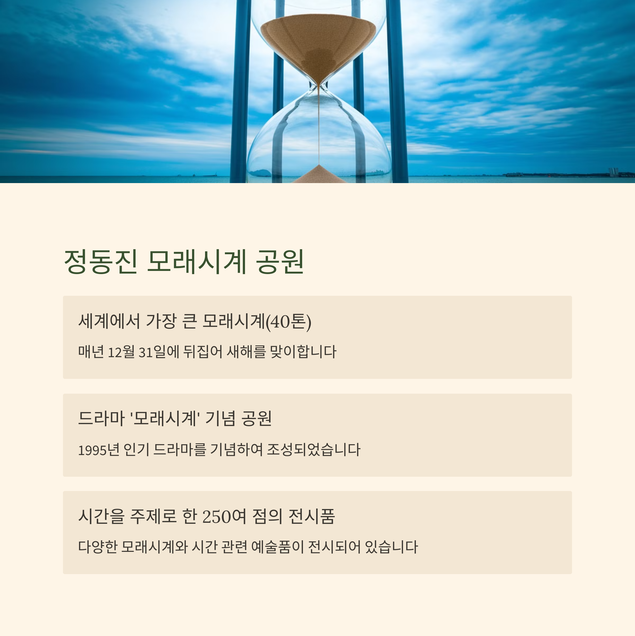 해돋이로 유명한 정동진은 새해 첫날의 감동을 언제든 느낄 수 있는 곳이에요. 연간 100만 명 이상이 이곳에서 태양의 첫 빛을 맞이한다고 해요(한국관광공사 데이터).
