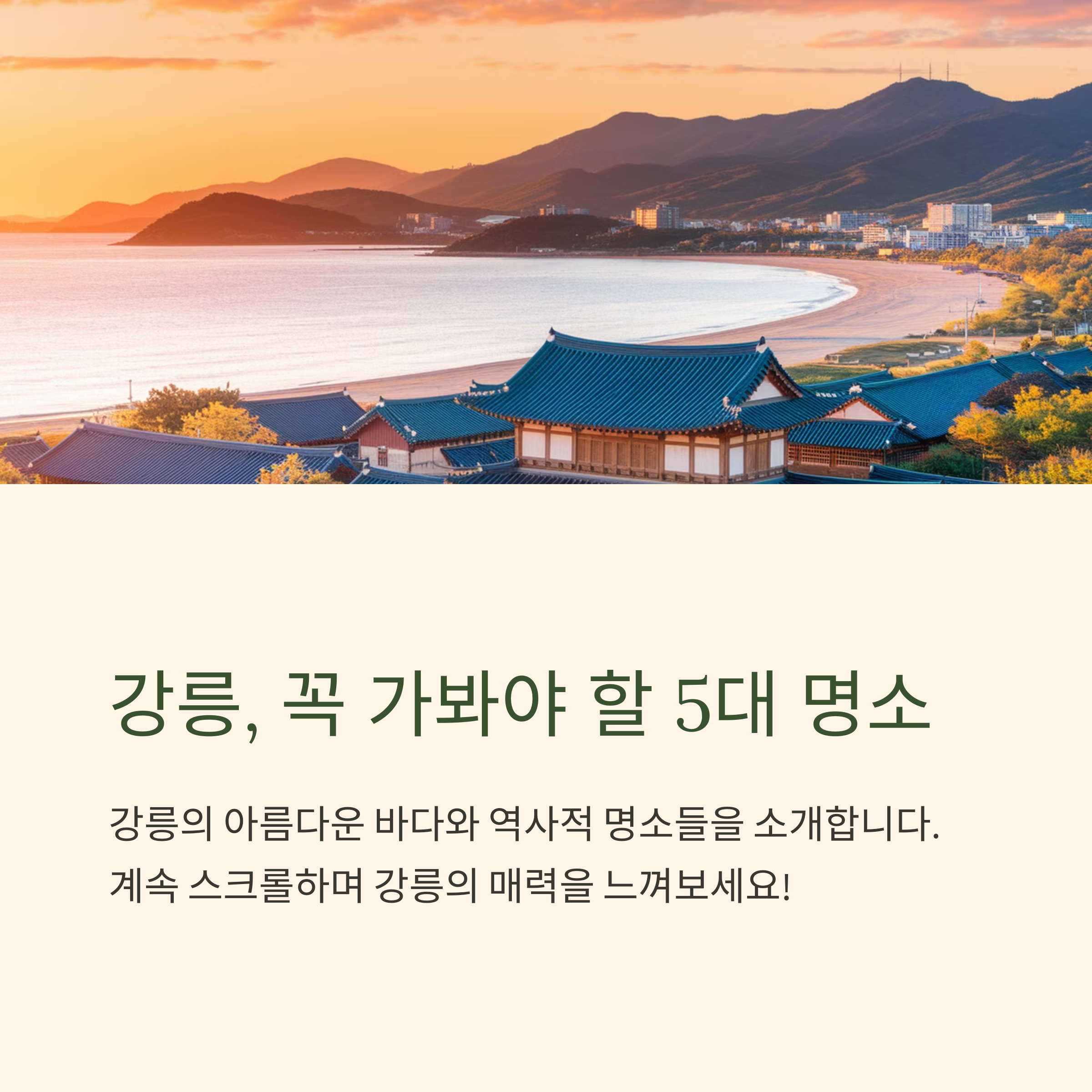 “여행은 눈으로 보는 게 아니라 마음으로 느끼는 것”이라는 말이 있죠. 강릉은 그 말에 딱 들어맞는 곳이에요. 푸른 바다와 깊은 역사가 어우러진 이 도시는 단순한 관광지를 넘어 가슴을 설레게 하는 추억을 선물합니다.