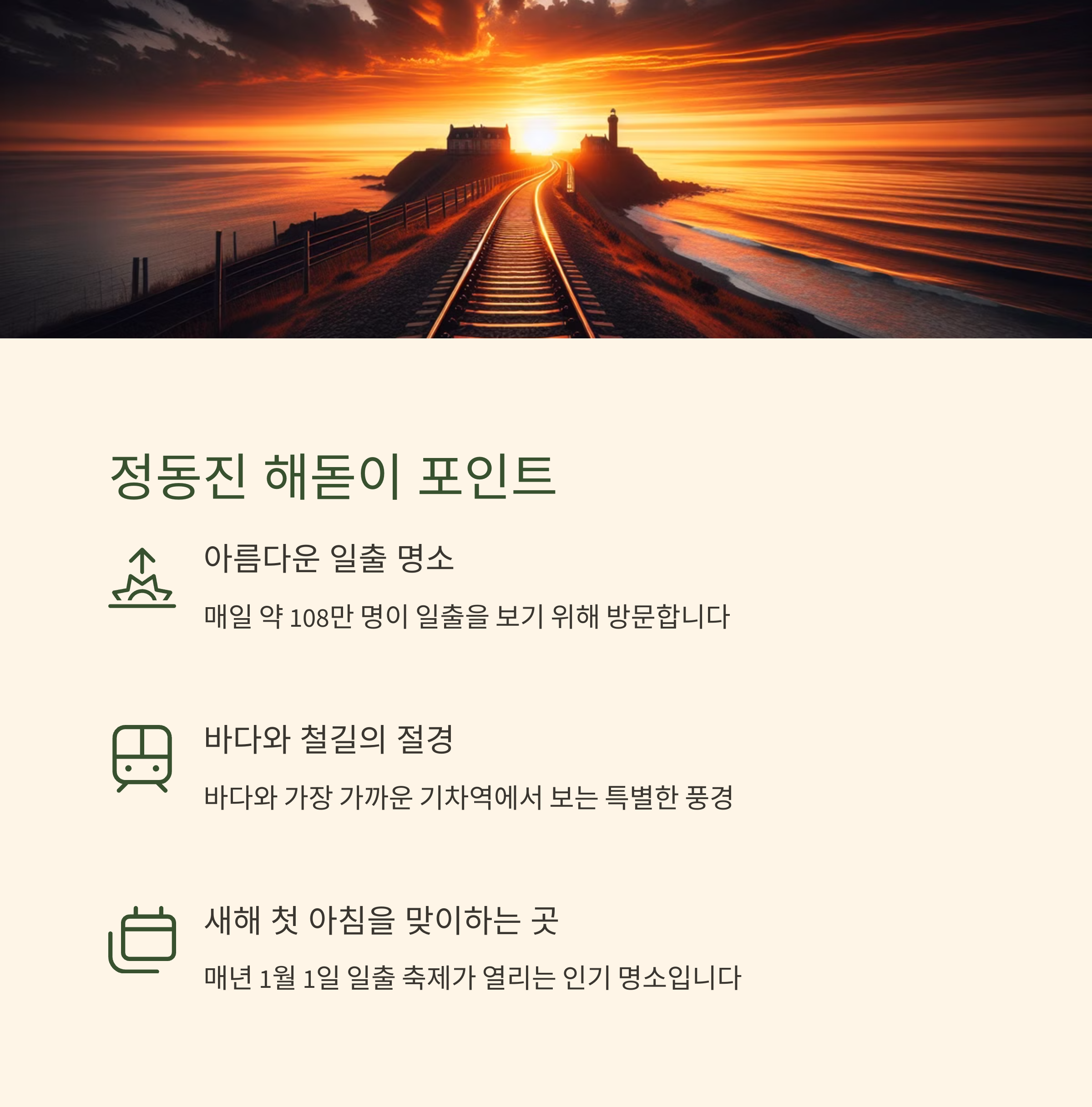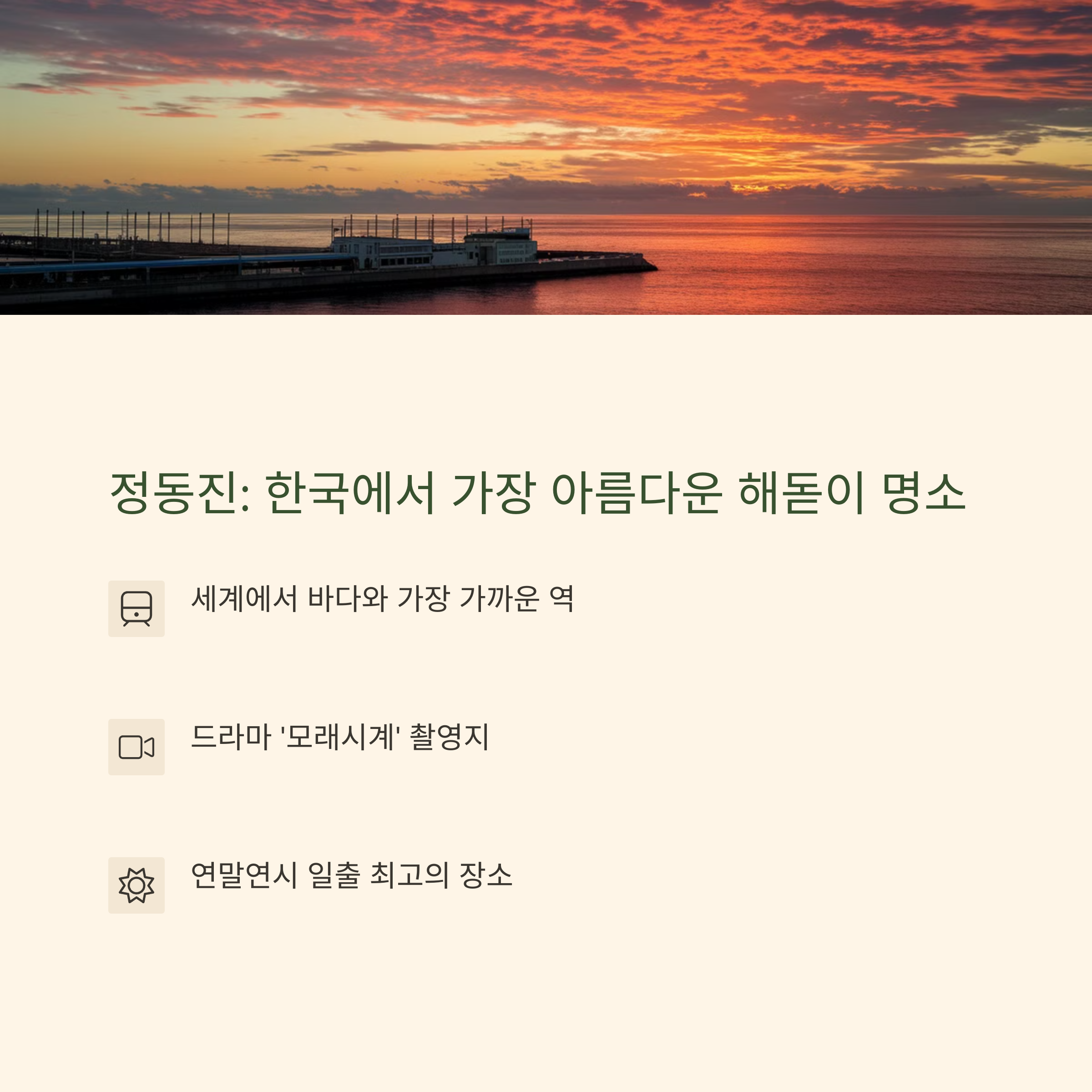 2. 정동진: 새벽 햇살과 기차가 그리는 낭만
