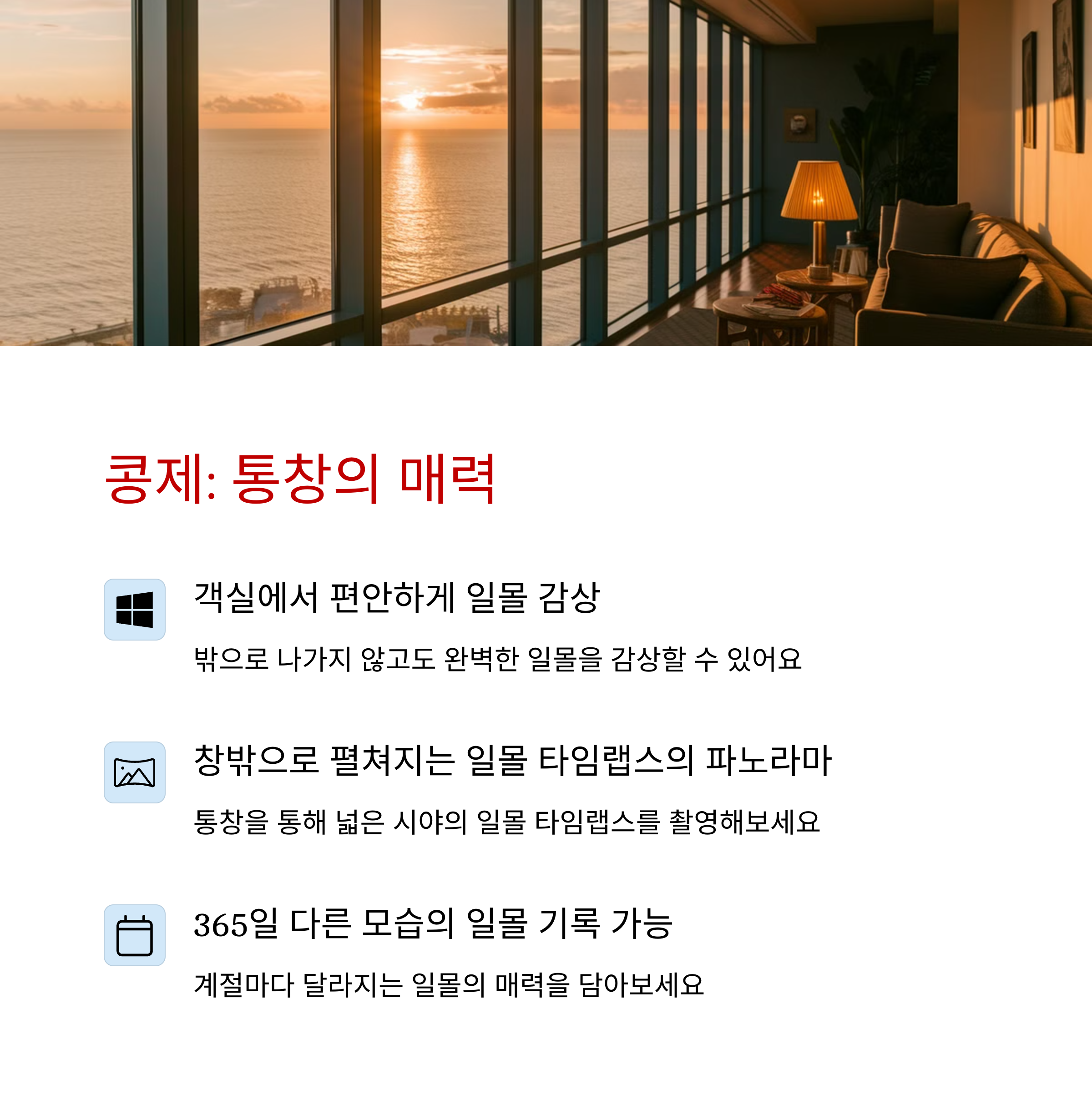 저는 이곳에서 타임랩스를 찍으며 해가 지평선 아래로 스며드는 모습을 보았는데, 마치 “시간이 멈춘 듯한 착각”에 빠졌습니다. “석양은 하루의 끝이 아니라 새로운 시작”이라는 격언이 떠오를 만큼 감동적이었어요. 촬영 팁 하나 드리자면, 일몰 1시간 전쯤 도착해 자리를 잡으세요. 최고의 순간을 놓치지 않을 거예요!