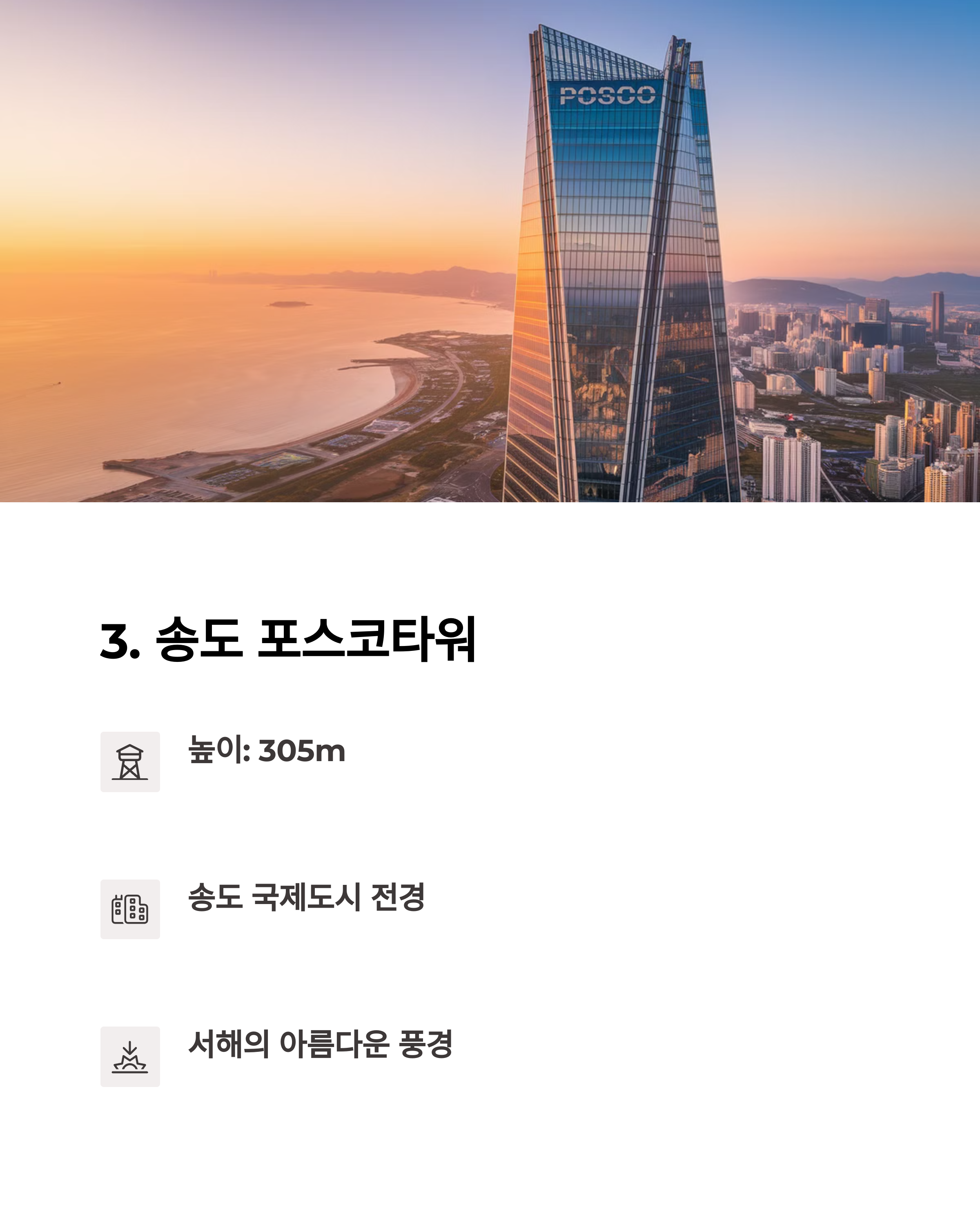 3. 인천 송도 포스코타워: 미래를 그리는 도시의 전망