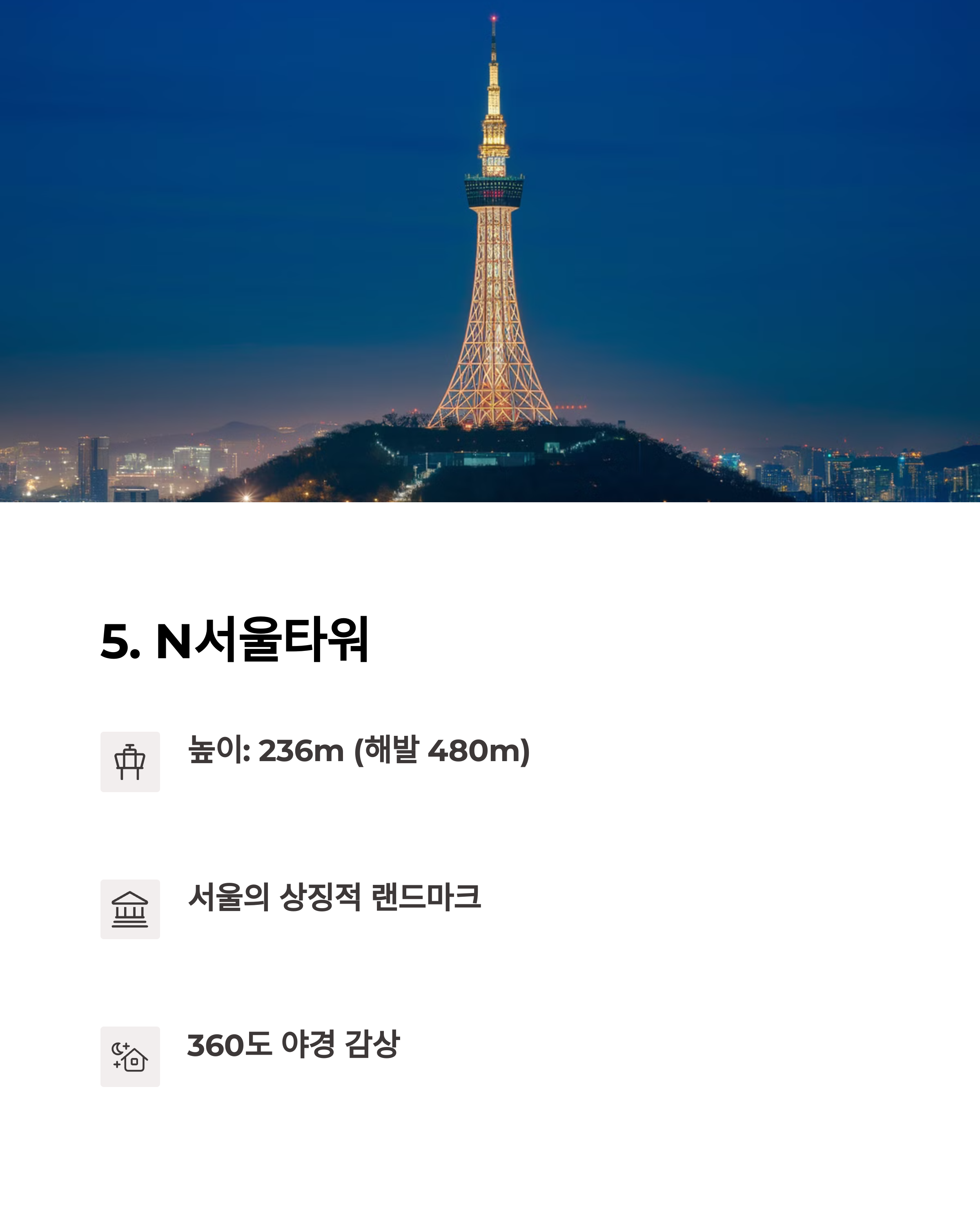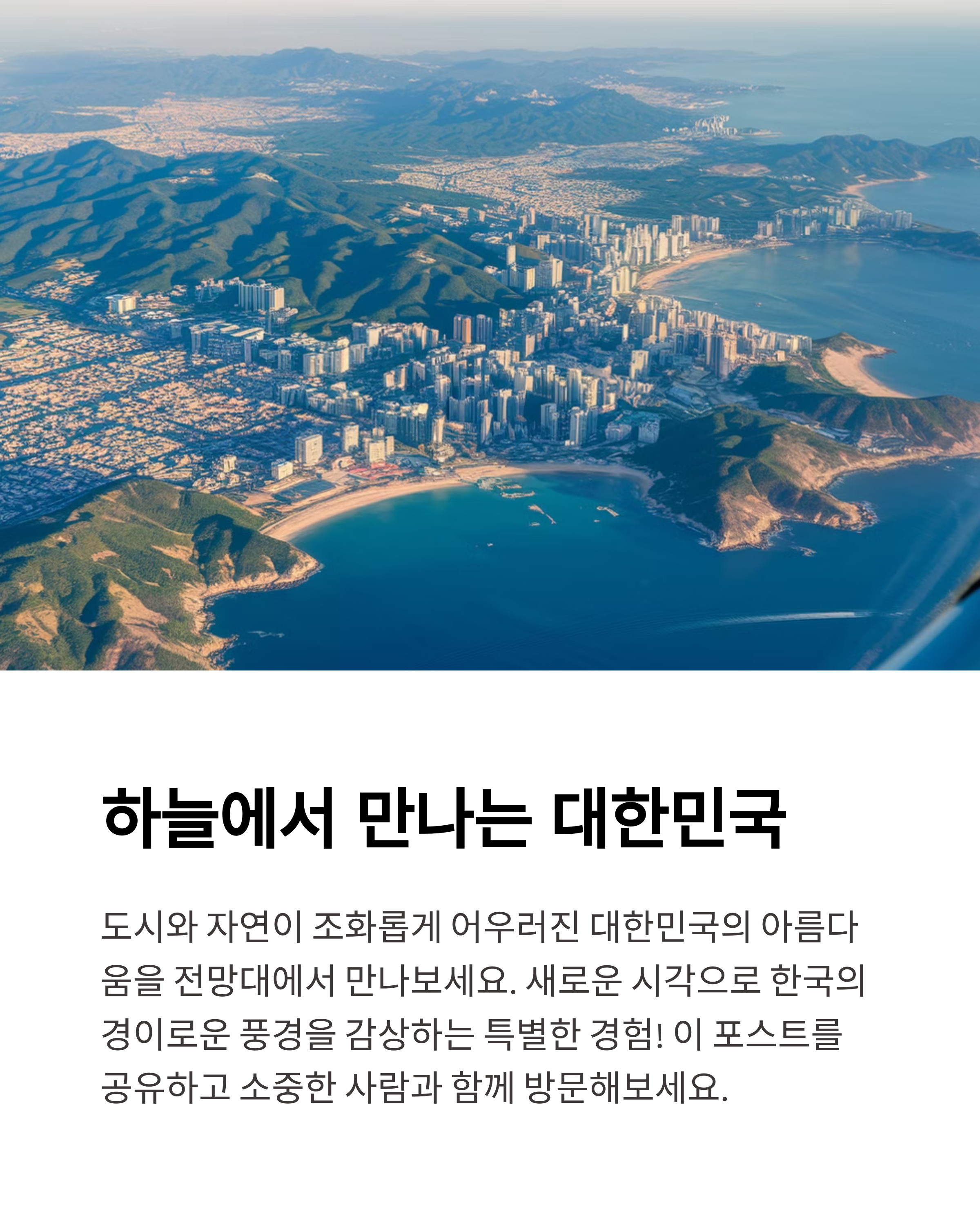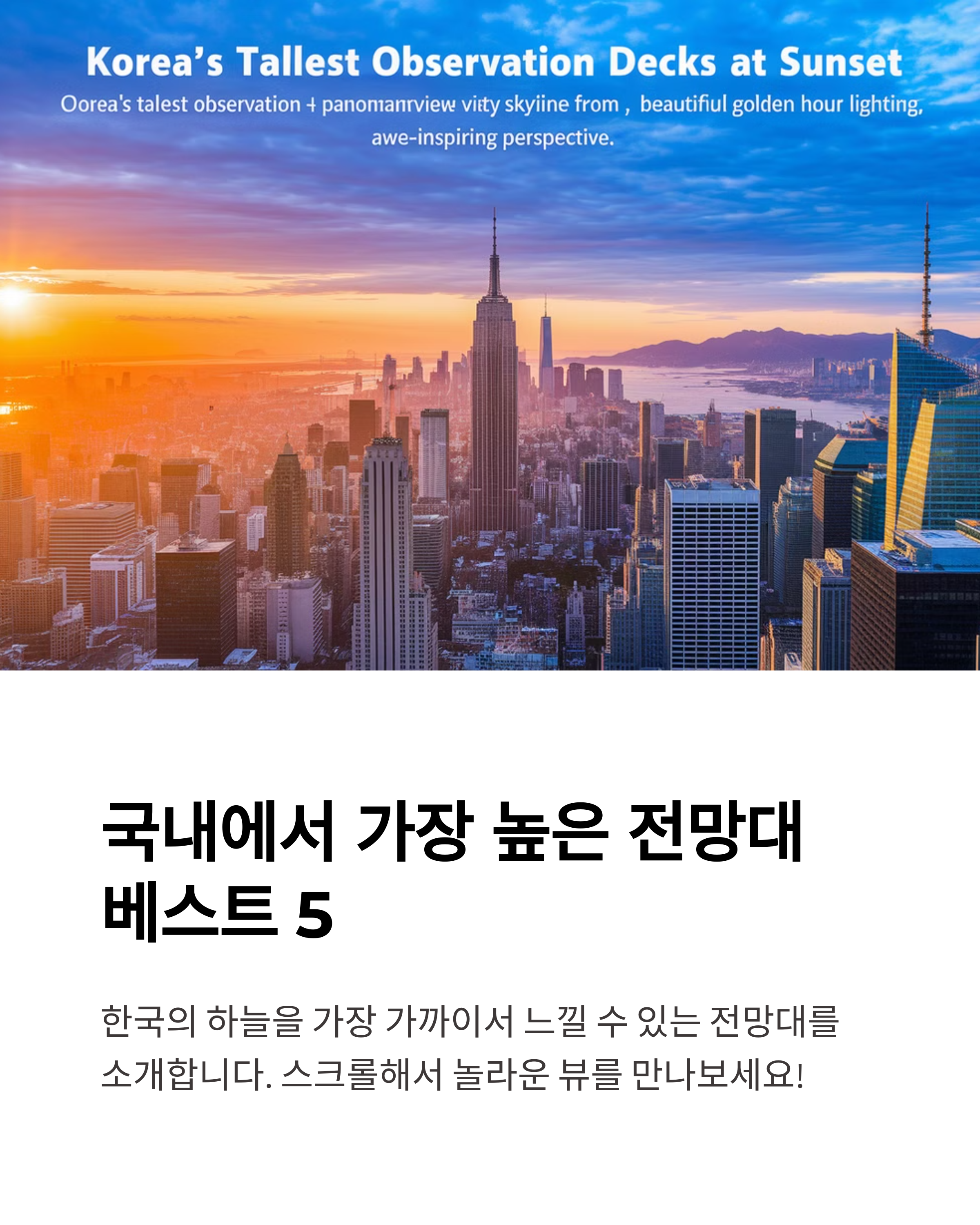 오늘은 한국의 하늘을 품에 안을 수 있는 최고의 전망대 다섯 곳을 소개하려고 해요. 단순히 높은 곳이 아니라, 도시와 자연, 과거와 현재가 얽힌 이야기를 담고 있는 특별한 장소들이죠. “하늘은 높고 말은 살찐다”는 속담처럼, 이곳에 올라가면 눈도 마음도 풍요로워질 거예요.