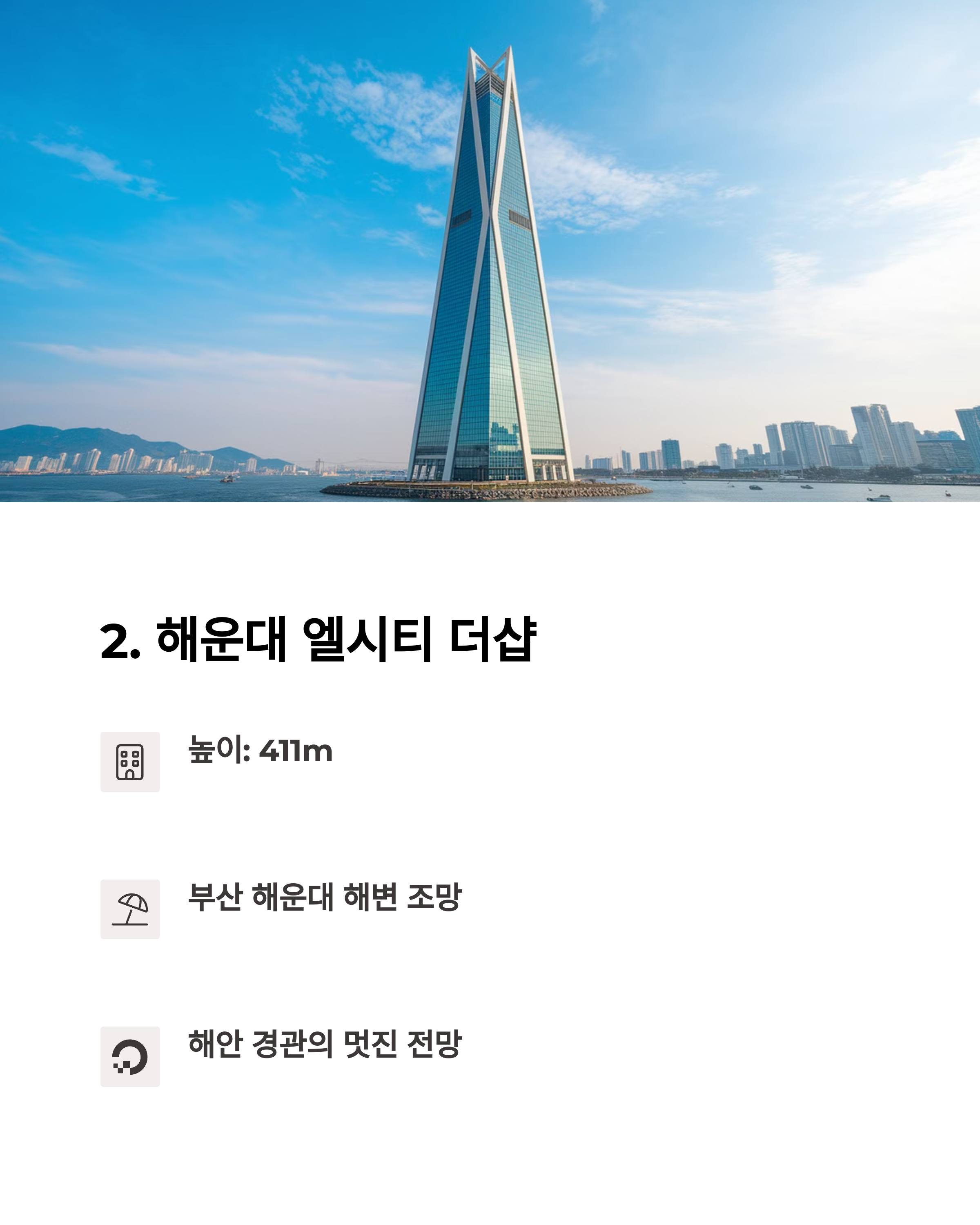 2. 부산 해운대 엘시티 더샵 랜드마크 타워: 바다와 맞닿은 부산의 꿈