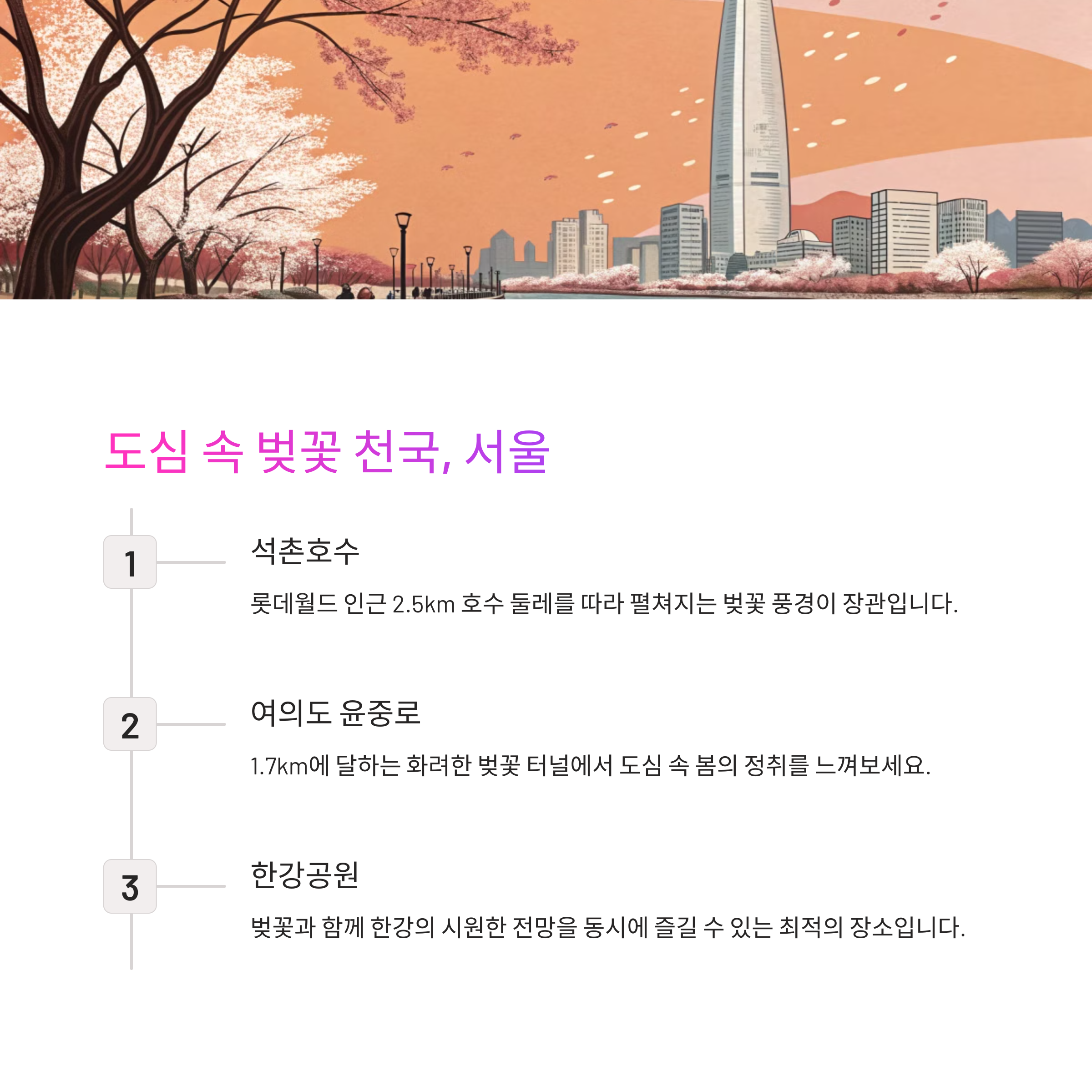 3. 서울 석촌호수와 여의도 – 도심 속 벚꽃 나들이