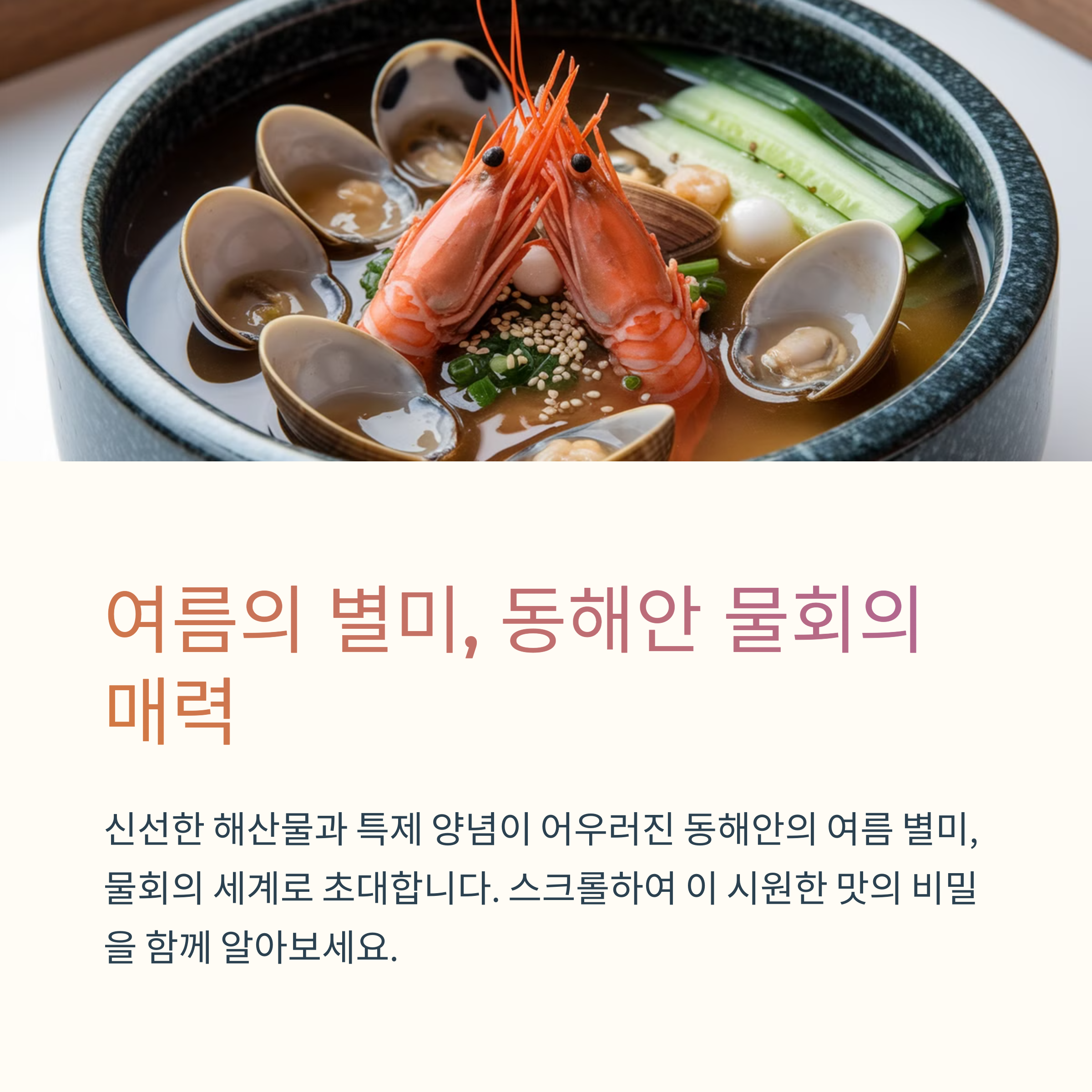 2023년 한 설문조사에 따르면, MZ세대의 72%가 '여름철 즐겨 찾는 메뉴'로 물회를 꼽았습니다. SNS에서 #동해물회 해시태그는 월평균 5만 건 이상 게시되고 있죠.