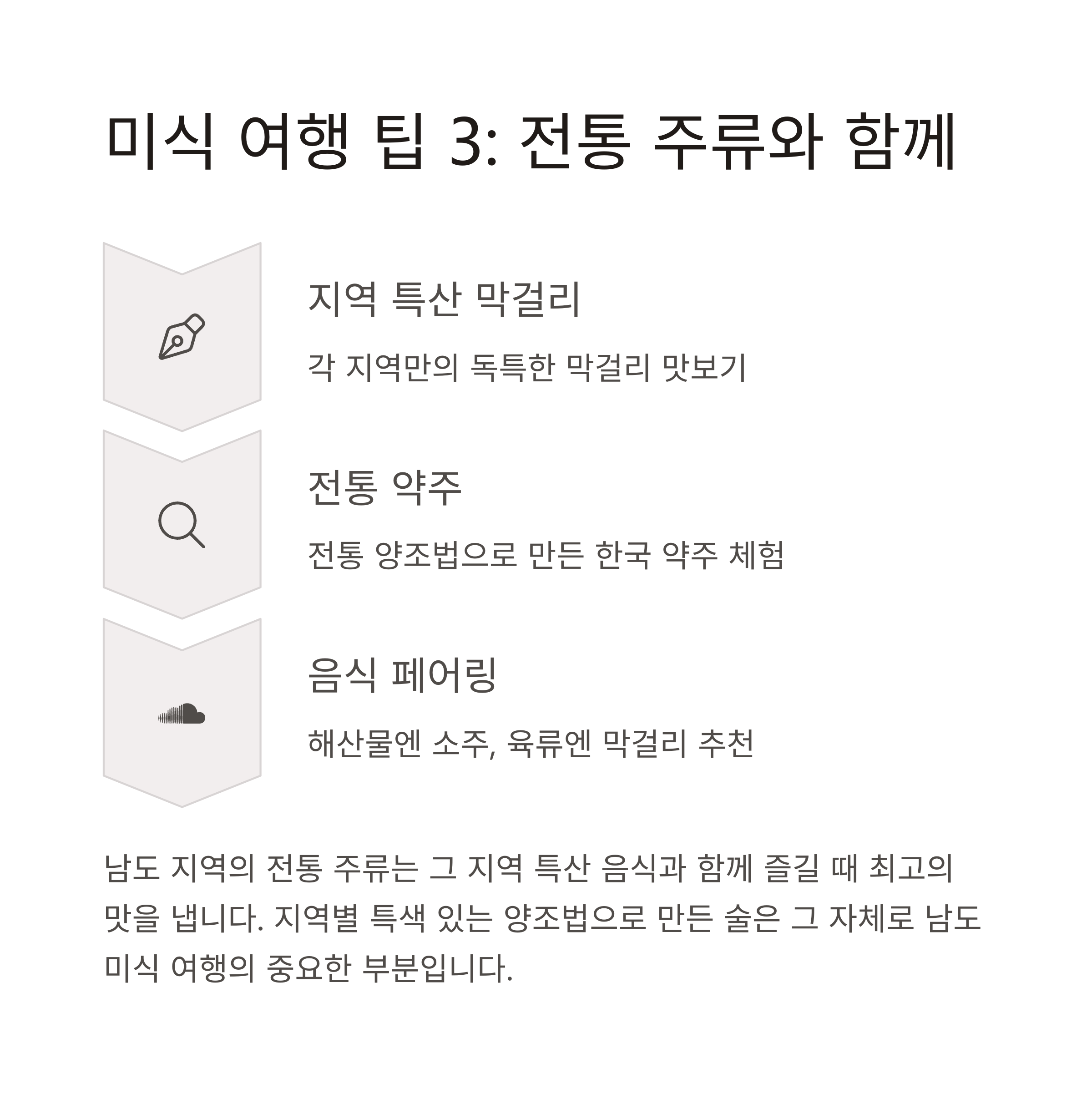 남도 맛집은 인기 많아 예약 필수! 재래시장에 들러 제철 식재료 구경도 해보세요. 그리고 잊지 마세요 — 막걸리 한 사발이 미식 여행의 마무리를 더욱 풍성하게 만든다는 걸! 단, 너무 맛있어서 다음 날 “나 왜 이렇게 많이 먹었지?” 할 수도 있으니 소화제 챙기기 필수입니다!