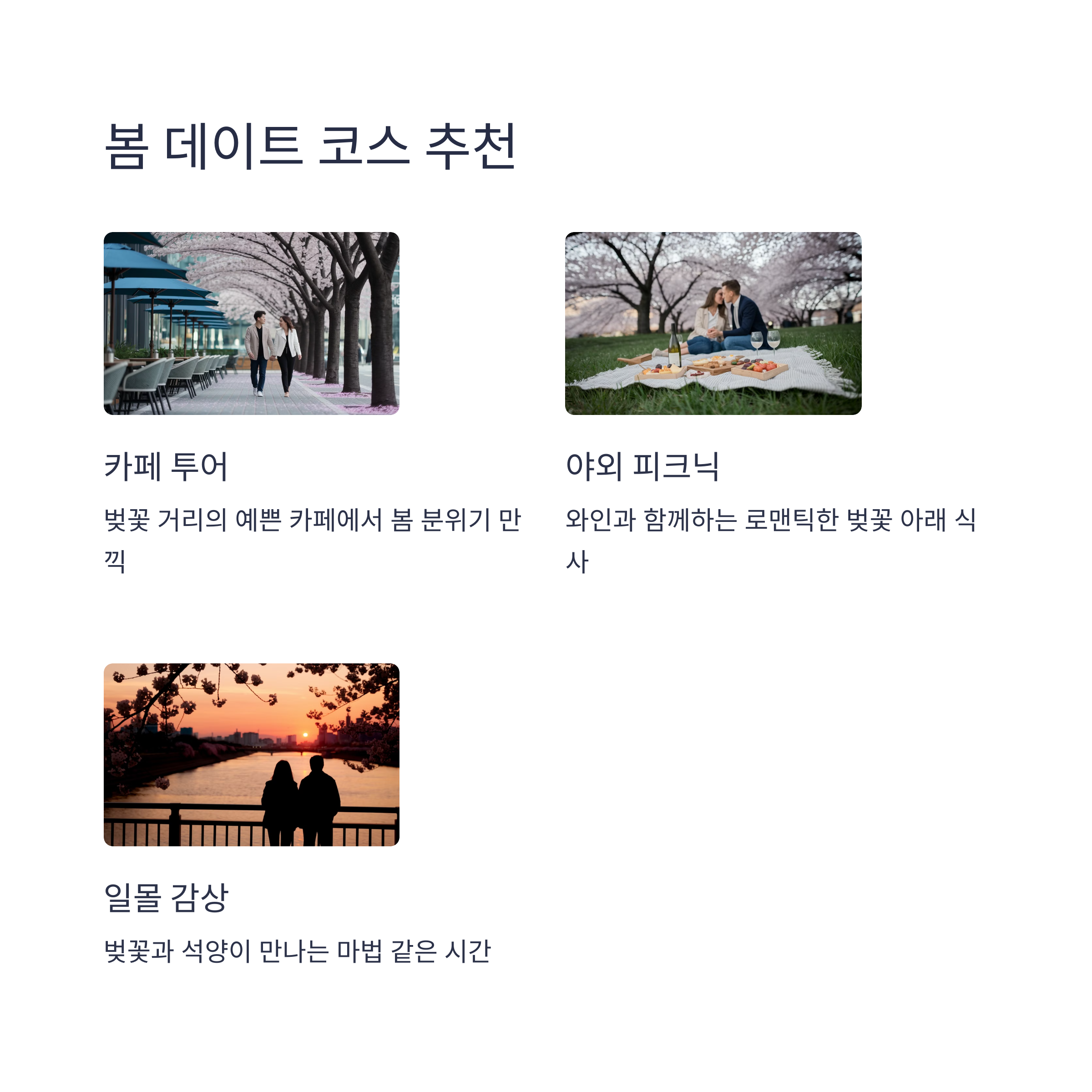 올해는 서울 여의도와 석촌호수에서 벚꽃과 함께 자전거 타기, 요트 투어와 같은 색다른 봄철 프로그램을 즐길 수도 있습니다. 이러한 흥미로운 액티비티는 단순히 꽃 구경을 넘어 경험을 풍부하게 해주는 역할을 합니다. “봄은 벚꽃 아래서만 오는 게 아니다. 희망과 즐거움에서 오는 것이다.”라는 말을 가슴에 새기며 이번 시즌을 즐겨보세요.