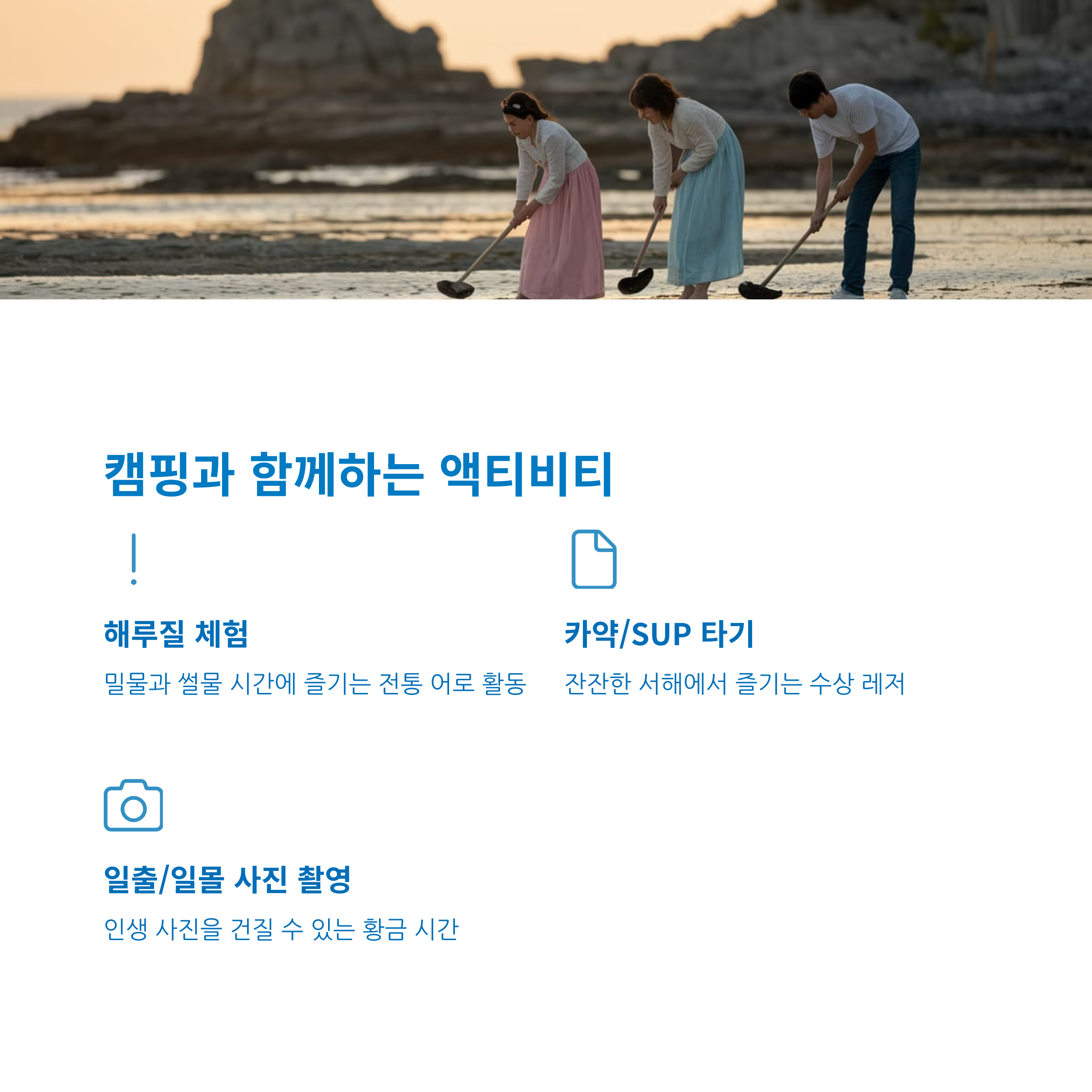 특징: 조개 캐기, 굴 따기 등 독특한 활동