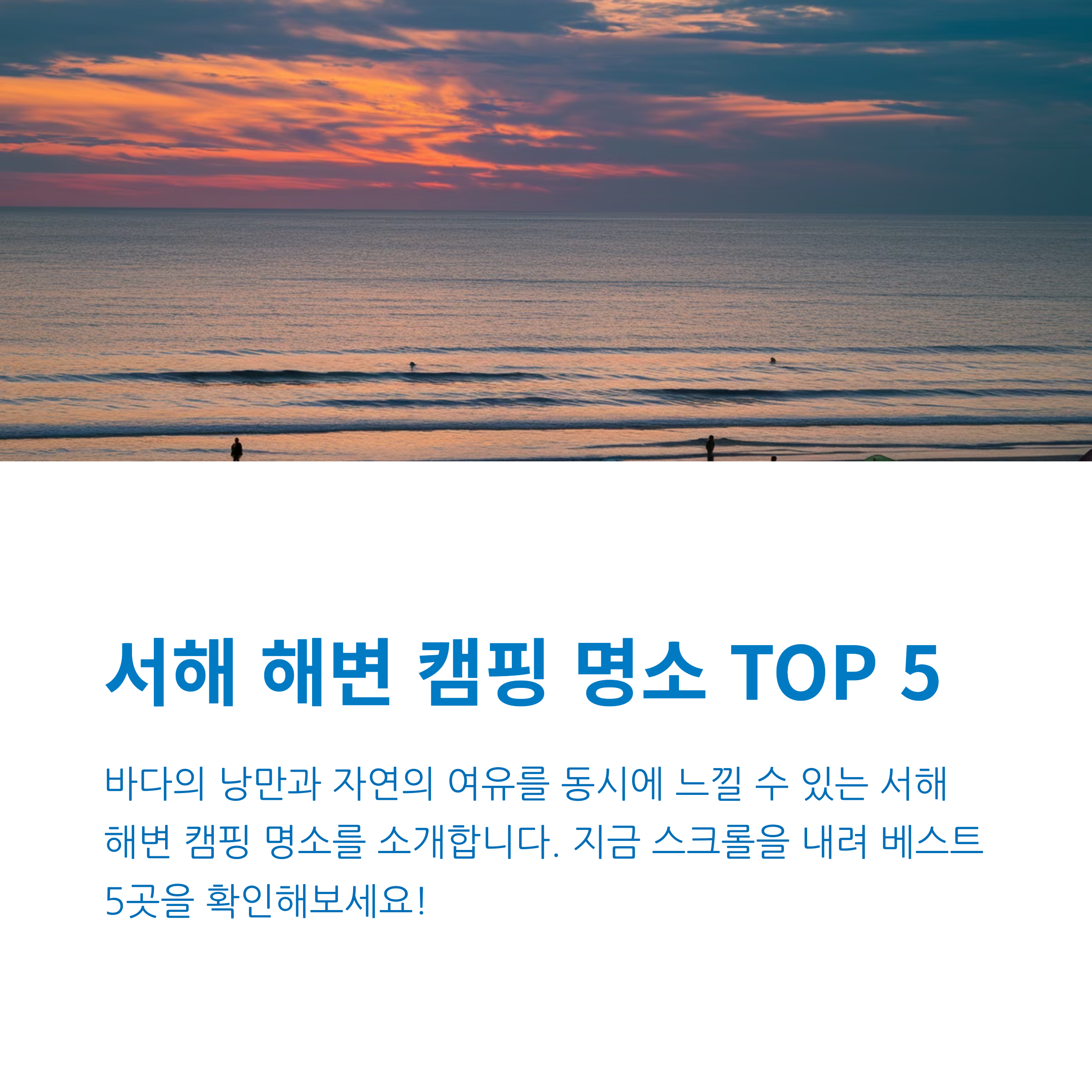 안녕하세요, 캠핑 애호가 여러분! 오늘은 일상에서 벗어나 서해의 푸른 바다와 황홀한 일몰을 만끽할 수 있는 캠핑 명소들을 소개해드릴게요. 파도 소리에 귀 기울이며 자연과 하나 되는 시간은 마치 “여행은 마음의 양식”이라는 속담처럼 우리의 영혼을 채워주는 소중한 순간이죠.