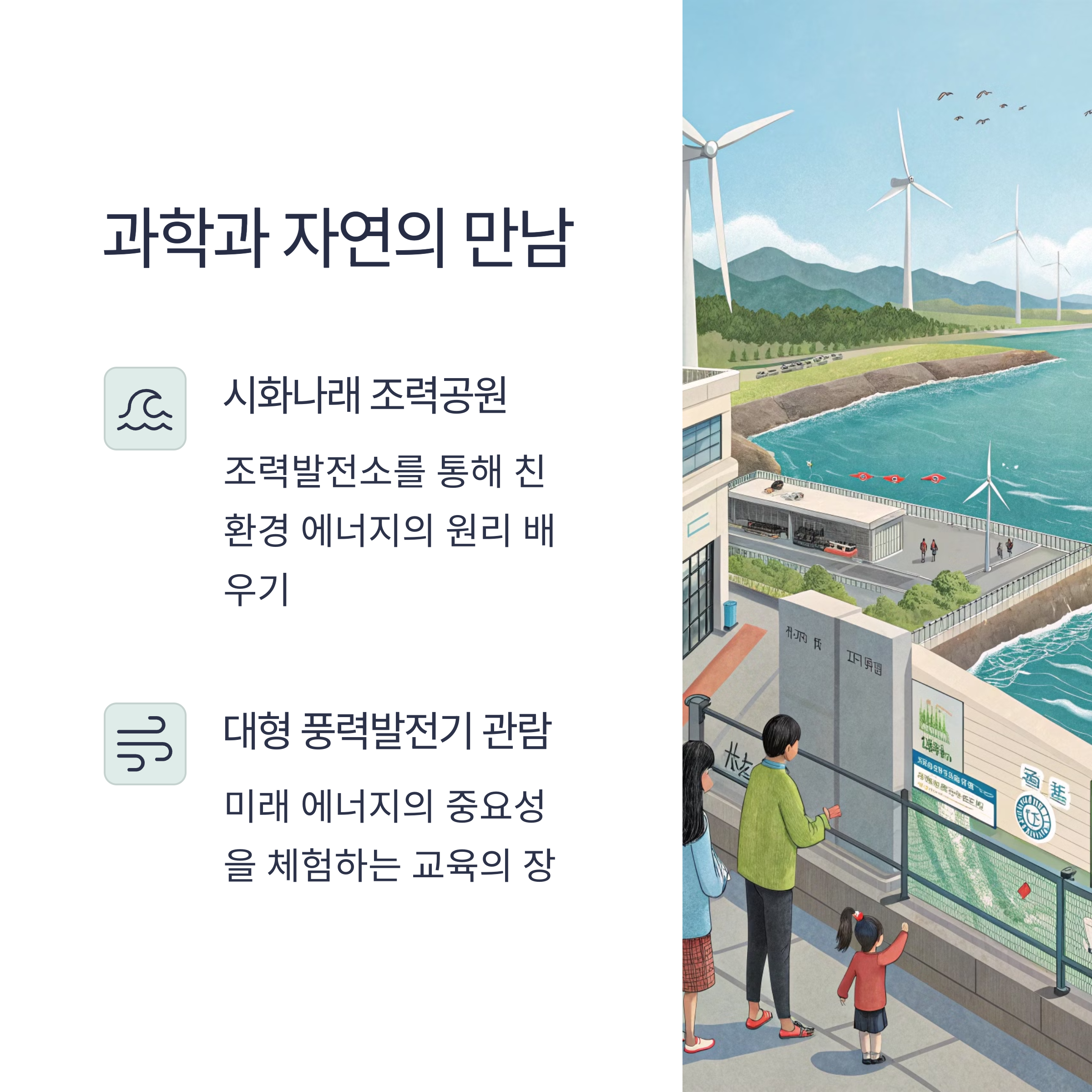 또한, 시화나래 조력공원의 달 전망대는 자연과 과학이 만나는 공간입니다. 조력발전과 에너지 원리를 체험하며 배우는 이곳은 아이들의 호기심을 자극하기에 제격이죠. 실제로 친환경 에너지에 대한 이야기를 나누다 보면, 미래 세대에게 환경의 소중함을 전하는 계기가 됩니다. 서해는 이렇게 자연과 문화가 손잡고 아이들의 감성을 풍요롭게 채워줍니다.