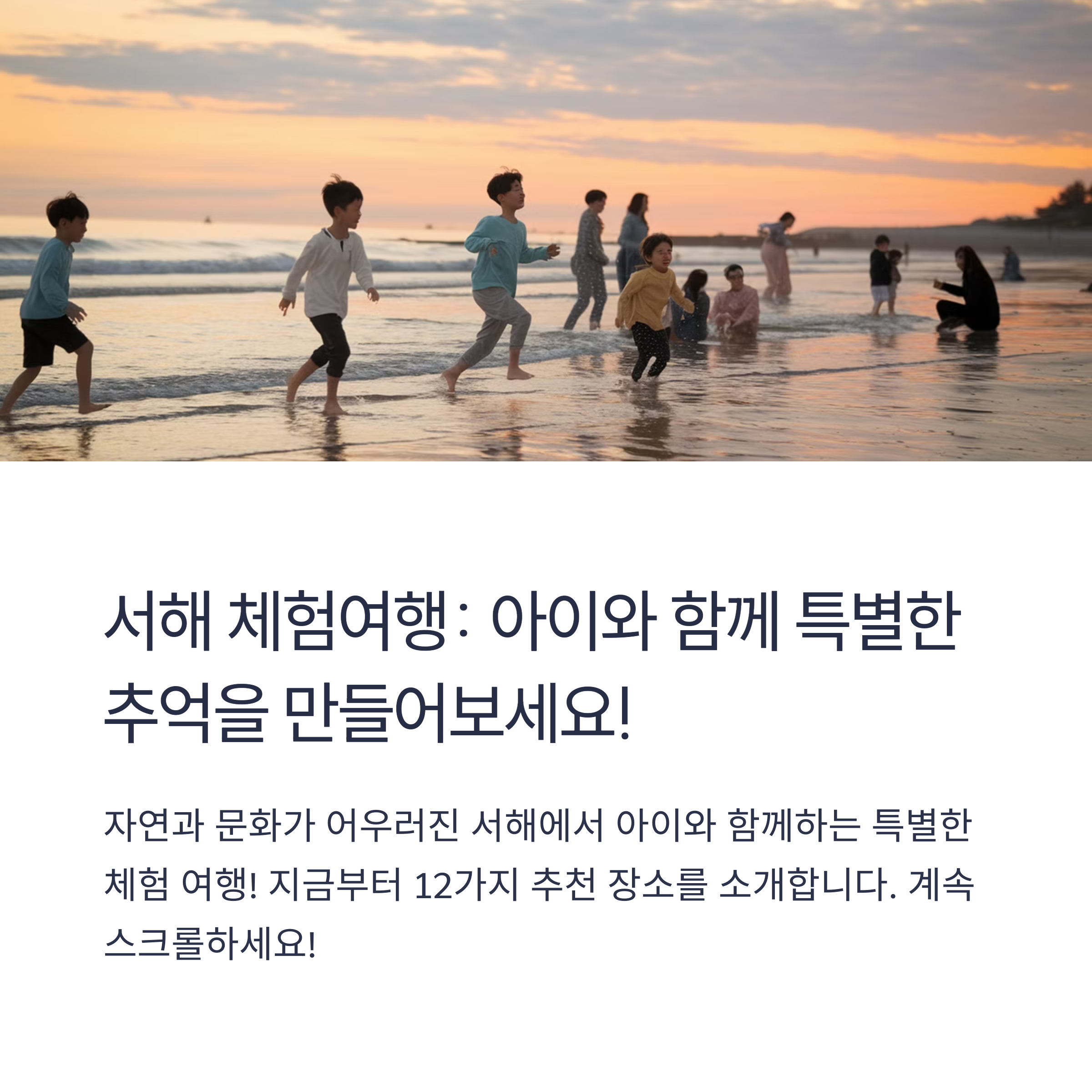 “여행은 눈으로 보는 것이 아니라 마음으로 느끼는 것”이라는 말처럼, 서해는 아이들에게 세상을 탐험하는 살아 있는 교과서를 열어줍니다. 이 글에서는 실제 경험과 구체적인 정보를 담아, 서해의 매력을 생동감 있게 소개하겠습니다. 자, 아이 손잡고 서해로 떠날 준비 되셨나요?