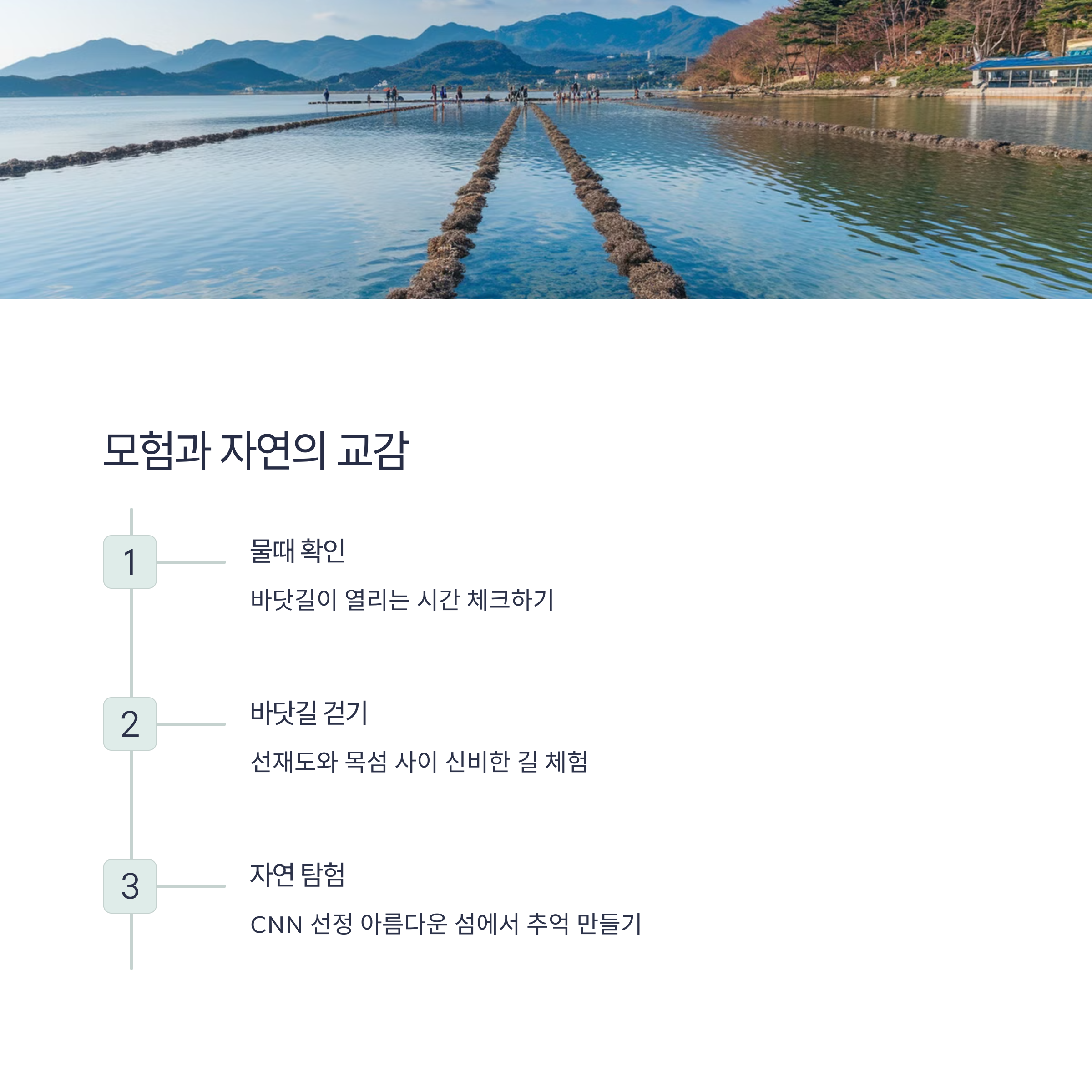 서해의 섬과 해변은 아이들에게 모험의 무대를 열어줍니다. 선재도 목섬은 간조 때 드러나는 바닷길을 걸으며 자연과 하나 되는 경험을 선사해요. 연간 20만 명 이상이 방문하는 인기 명소로, 가족 여행객의 발길이 끊이지 않죠(인천시 관광 통계). 저는 아이들과 이 길을 걸으며 파도 소리에 귀 기울이고, 해변에서 작은 게를 발견할 때마다 아이들의 눈이 반짝이는 걸 봤습니다. “바다 위를 걷는” 듯한 그 느낌은 마치 피터팬 속 네버랜드로 떠나는 기분이었어요.