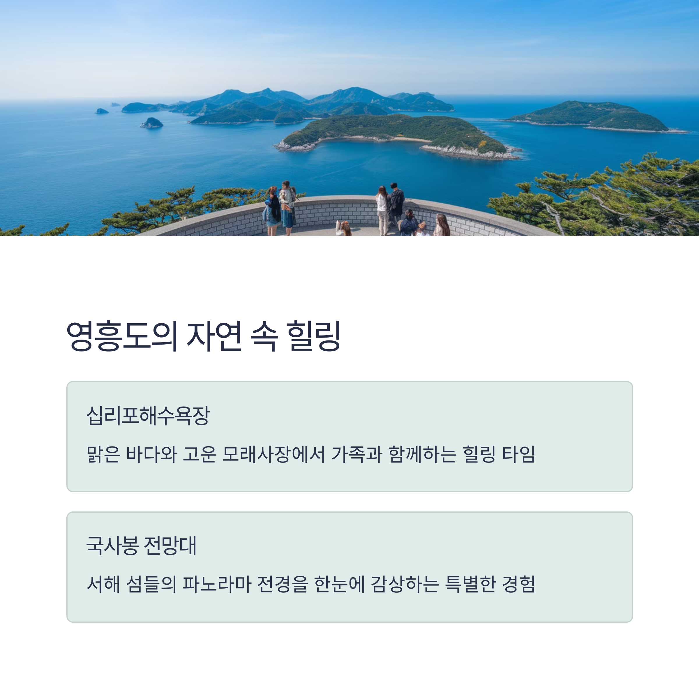 영흥도도 놓칠 수 없는 섬이에요. 역사 유적과 아름다운 해변이 어우러진 이곳은 캠핑과 물놀이를 즐기기에 안성맞춤입니다. 저희 가족은 영흥도 캠핑장에서 밤하늘을 보며 “세상은 넓고 할 일은 많다”는 말을 떠올렸죠. 아이들은 텐트에서 깔깔대며, 자연 속 하룻밤이 얼마나 특별한지 몸소 느꼈습니다. 서해의 섬들은 아이들에게 모험심을 키우고, 자연을 사랑하는 마음을 심어줍니다.