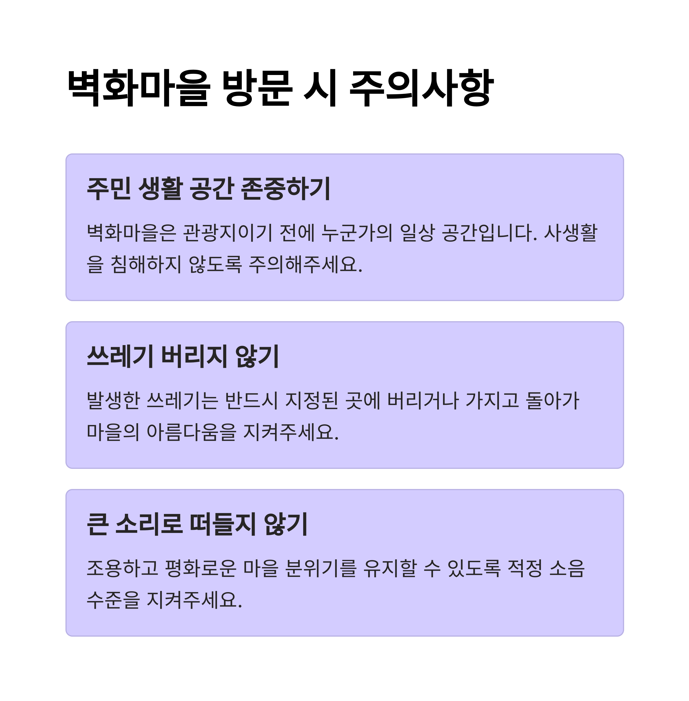 지난 봄, 조카들과 함께 이곳을 찾았는데, 아이들이 “진짜 동화 나라에 온 것 같아요!”라며 벽화 앞에서 신나게 포즈를 취했다. 그때 찍은 사진은 지금도 거실에 걸려 나를 미소 짓게 한다.
