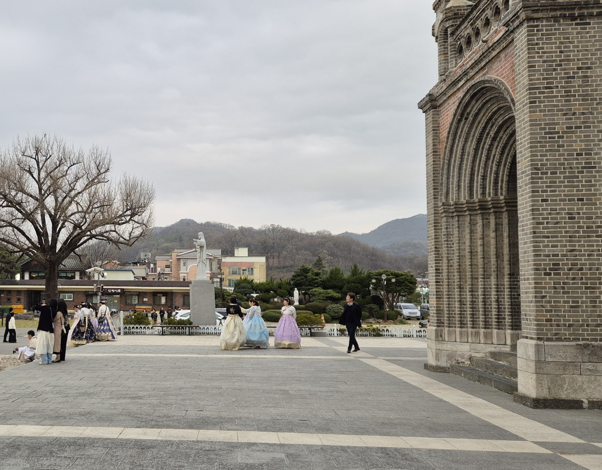 서양식 성당과 한국적인 풍경이 한곳에서 만나면서 색다른 감성을 자아낸다.