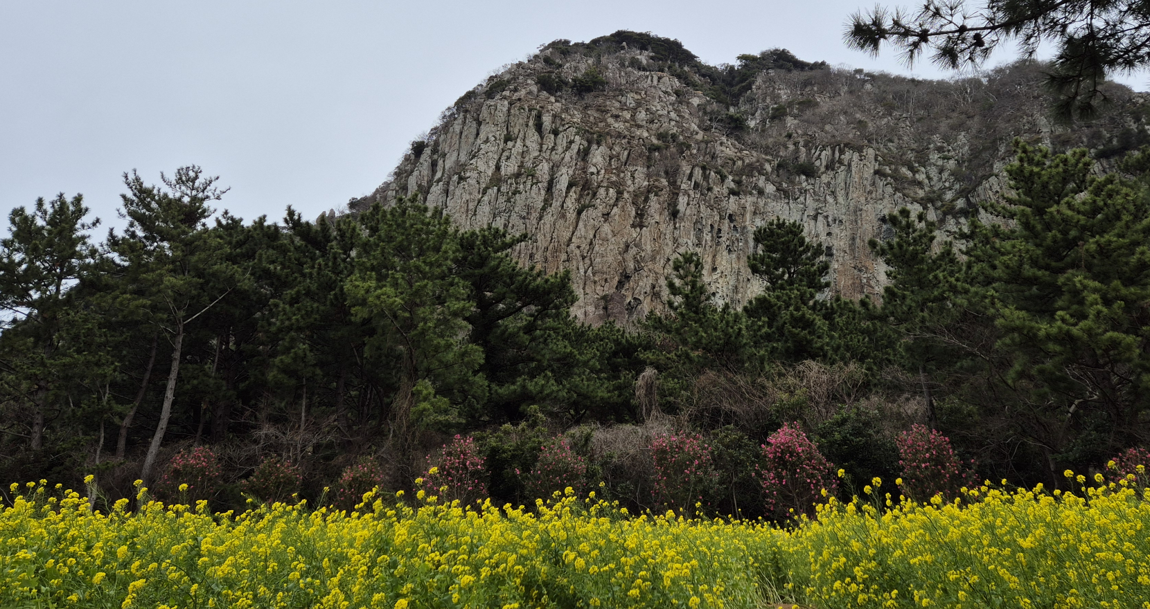 산방산은 제주 서귀포시 안덕면에 자리한 높이 395m의 오름으로, 독특한 바위 절벽과 함께 제주에서 가장 웅장한 자태를 뽐내는 산 중 하나다. 이곳의 유채꽃밭은 제주에서도 규모가 큰 편에 속하며, 매년 3월부터 4월까지 화려한 노란빛이 장관을 이룬다.